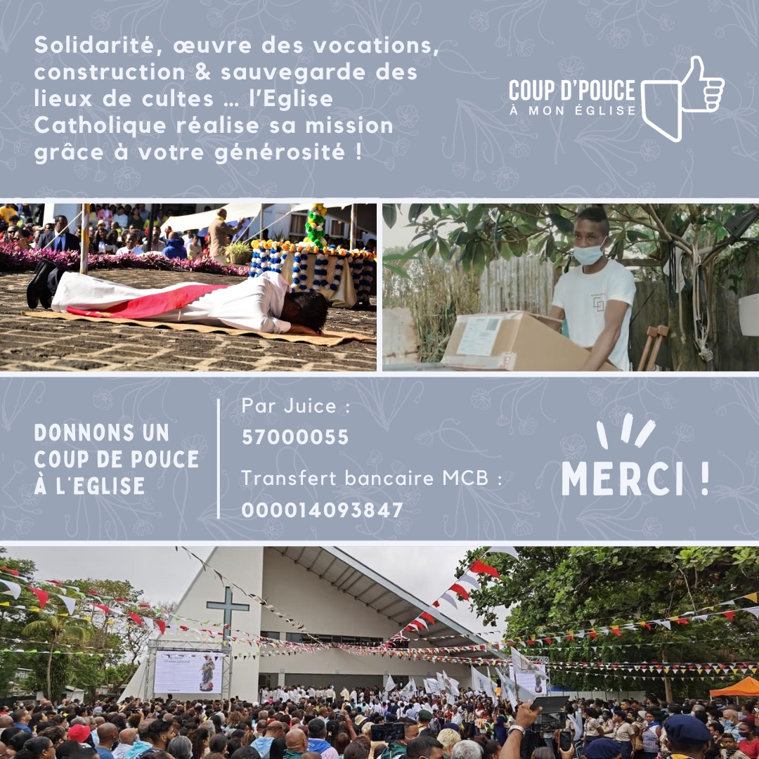 Pour continuer d’aider l’Eglise à aider, rendez-vous sur notre siteweb. : https://coupdepouceamoneglise.mu/services_diocesains/